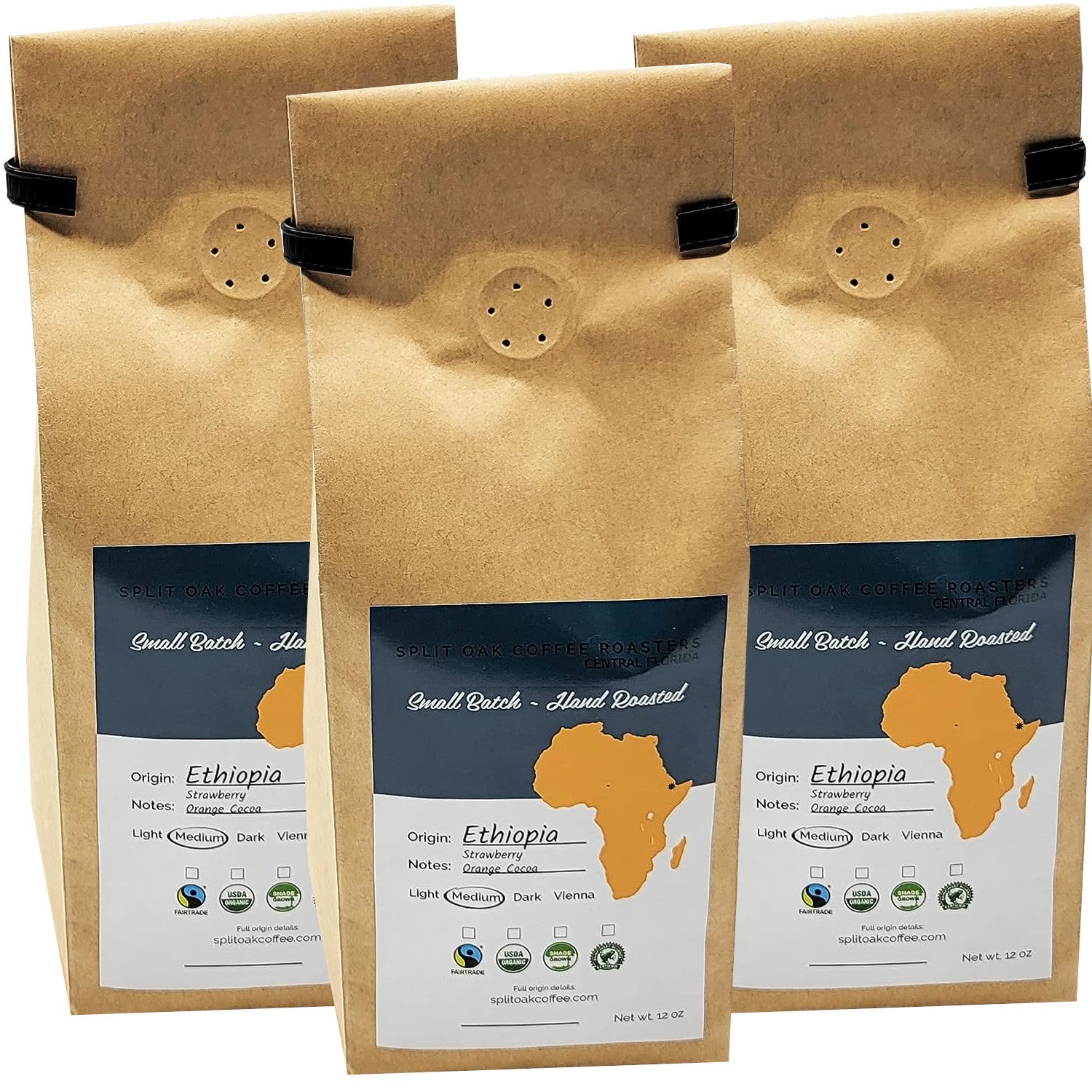 3 Pack Ethiopian Coffee Roasted Whole Beans 12oz USDA Fairtrade Coffee Rich and Bold Strawberry Orange and Cocoa Finish