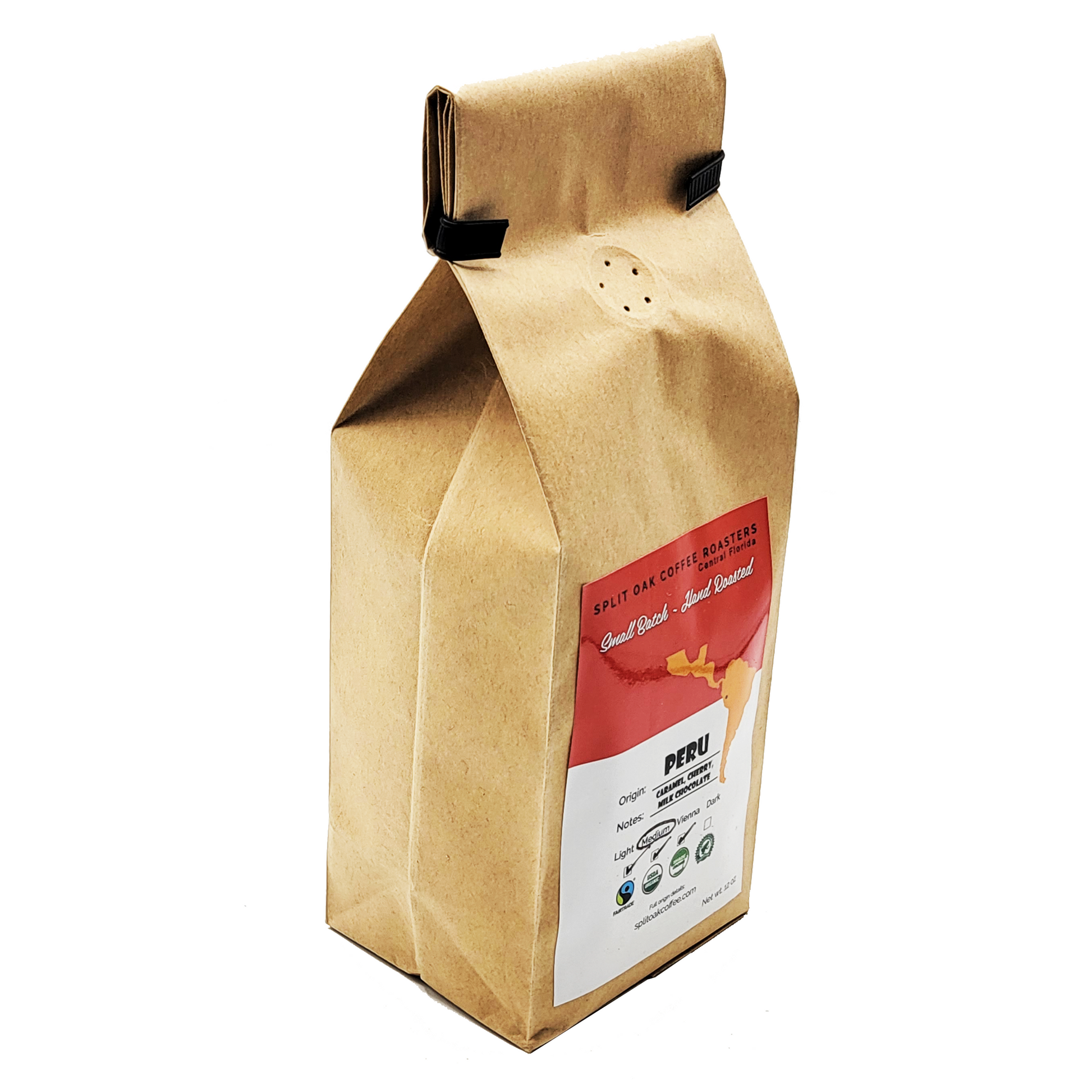 THE SPLIT OAK COFFEE ROASTERS USDA Organic Peruvian Coffee is outstanding characterized by hints of caramel, cherry, and milk chocolate. Medium roasting allows for true flavor to come through for a remarkable taste.